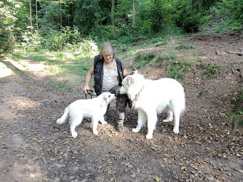 Pyrenejský horský pes s PP „Arrow Dusty“ z chovatelské stanice „Z Malenických pastvin“, jehož otcem je „Dusty Babylon Bohemia“ a matkou „Pontoise du Massif de l'Esterel“ (fena import z Francie a tedy další skutečnost, která se mi na tomto spojení prostě líbí).