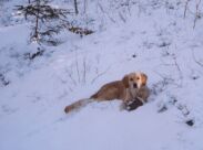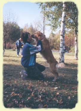 Přišel prvnísníh. Jako většina pejsků i Dino dováděl v závějích a měl ze sněhu obrovskou radost. Chodili jsme spolu na dlouhé procházky a bylo nám spolu fajn. Mému pejskovi začala konečně růst správná retrívří srst (mimochodem, ta má jednu neocenitelnou vlastnost - je samočisticí, takže se váš miláček vyválí v blátě a za hodinu už to téměř nepoznáte :-) ) a vůbec začal vypadat jako správný představitel svého plemene. Velmi si oblíbil rukavice jakéhokoli druhu a nadšeně je nosil. Začaly ho zajímat fenky, značkoval pilně a s naprostým přehledem, zažil první psí rvačku a psí puberta s ním začala mlátit ostošest.