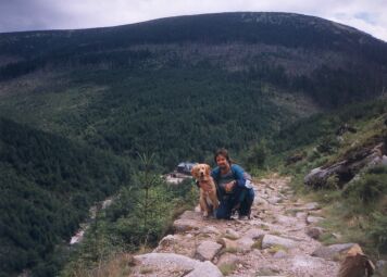 Je pravda, že počasí už nám tak nakloněno nebylo. Celý týden propršel a přežil jsem jen díky ochotě místního kotelníka, na jehož pracovišti jsem si každý den sušil oděv. Můj Dino byl ale naprosto v pohodě. Začal jsem mu říkat "zlatý horský pes", jelikož každodenní zhruba 20km túry a vysokohorský terén mu nečinily žádný problém. Vrcholem všeho bylo, když jsme po namáhavé cestě stále do příkrého kopce došli na Labskou boudu a on začal lítat po louce evidentně nevyběhaný a plný energie... Prochodili jsme spolu desítky kilometrů přírodou a marná sláva, na psa je nejkrásnější pohled skutečně v té volné přírodě, kde může běhat, zkoumat a radovat se. Obdivoval jsem a stále obdivuji jeho nezdolnou radost ze života, dychtivost, která je na něm tak jasně vidět. Nevím, zda si Dino bere příklad ze mne, ale zcela určitě se já snažím brát si příklad z něj, z jeho přístupu k životu. Není to polidšťování psa, je to jen návrat zpět k přírodě, k instinktům a umění radovat se...