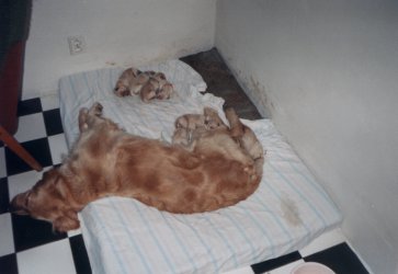 Dinův vrh - 2 pejsci a 5 fenek (narodili se v noci z 30.4. na 1.5.1997)