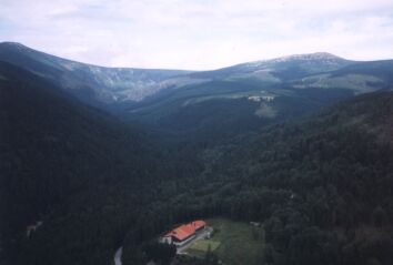 V červnu roku 1998 (Dinčovi byl rok a fous) jsme spolu odjeli na týden do Krkonoš. Potřeboval jsem si odpočinout od lidí a práce a těšil jsem se na několik dnů strávených jen ve společnosti svého čtyřnohého kamaráda. Ubytovali jsme se v jednom odlehlém penzionu ve Špindlerově Mlýně, kde jsme se okamžitě stali nejoblíbenějšími hosty díky Dinově exteriéru a poslušnosti. Opravdu je to radost mít vychovaného pejska a vědět, že s ním můžete "do společnosti" ...