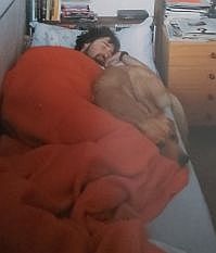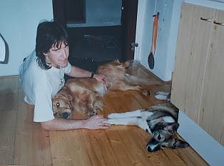 ... a tady se mi měl od základů změnit život - vstoupil do něj můj úžasný psí profesor a parťák, zlatý retrívr Dineček... fotek z té doby mám hodně, vybral jsem tři, které velmi dobře vystihují vše, co mezi námi od samého začátku fungovalo - vzájemná oddanost, sdílení společného pelíšku a spontánní radost z pohybu venku...