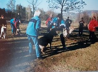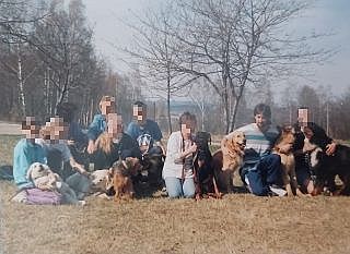 ... a z hlubin času a doby klasického fotografování vytažené vzpomínky na její úplné začátky... ze zde zachycených štěňátek i pejsků dospělých dnes už samozřejmě nežije nikdo, ale v mé paměti zůstanou navěky zachyceni i se svými pánečky a paničkami - některé jsem znal jen „pracovně“, jiné jsem poznal blíže... v té době jsem s pejsky dělal mimo jiné i obranářské práce... jako správný blázen a kaskadér bez jakékoli ochrany – žádné ringo ani rukáv... šli jsme do toho na férovku a hodně mi to dalo v poznání psí síly a reakcí, stejně jako ve zrychlení reakcí mých... na konci jsem vždycky funěl jak lokomotiva, ale moji klienti se na to pokaždé neskutečně těšili...;)