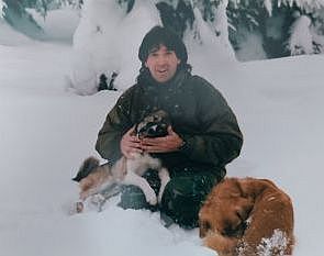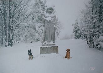 ... byl úžasný mnohadenní výlet, který jsem se svými psími parťáky podnikl začátkem roku 2002, mám z této akce spoustu fotek... tož jen takový minivýběr... psí čtveřice na jedné z fotek spolu zažila neskutečné věci... k Radegastovi jsme šli občas po pás ve sněhu a až úplně nahoře jsme zjistili, že cesta je pro velké množství sněhu uzavřena... jednou jsem zapadl až po hruď a moji nadšení psí kluci se rozhodli mě zahrabat úplně... nezapomenutelné zážitky v zimní horské přírodě a teprve pětiměsíční „sibiřan“ Šedýsek, který to také všechno statečně ušlapal po svých... úžasné psí duše, zachycené na jedné fotce v okamžiku společného soustředění... také už jsou všichni dlouho v psím nebi, ale na tomto světě po sobě zanechali nekonečně dobra a lásky...